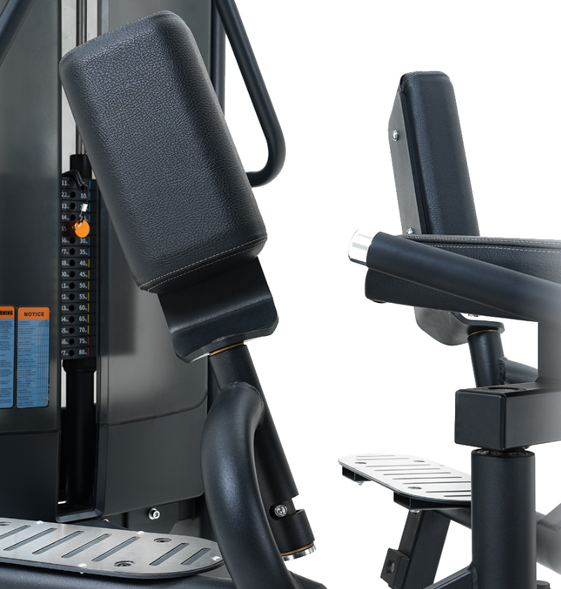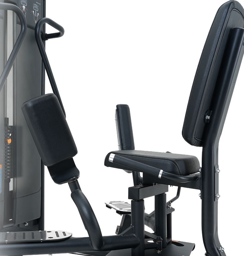Target your inner and outer thigh muscles with our abductor adductor machine. Transition to the inner or outer thigh exercises with a quick lever adjustment and quick pad flip design. Multiple angle adjustments allow you to find your ideal starting position and desired resistance. The abductor adductor features a 105 degree back pad and 70 degree knee support angle for optimal support and to promote good form.