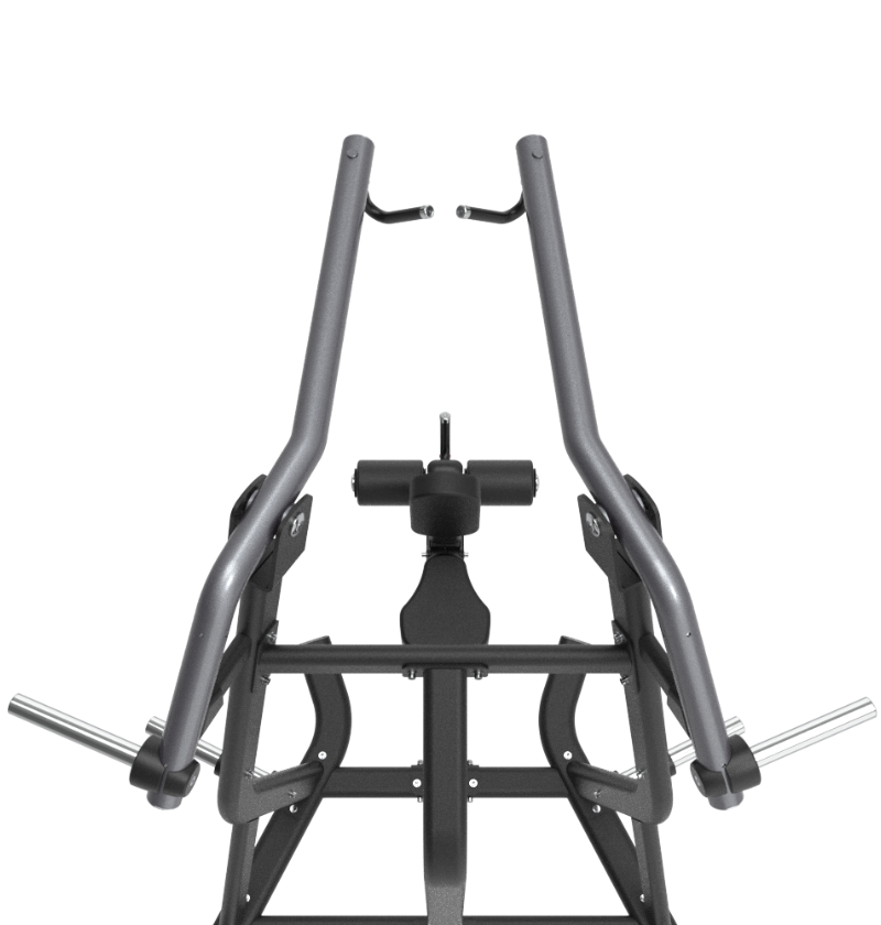 Our plate loaded high row machine is the ideal piece of equipment to target your upper and mid back muscles. The plate loaded high row comes with angled handles to relieve strain on your wrists, promotes a natural pulling motion and is comfortable on your shoulders during the exercise. Each arm moves independently to promote equal muscle development on both sides of your back. The pivot points use high quality bearings for a smooth range of motion.